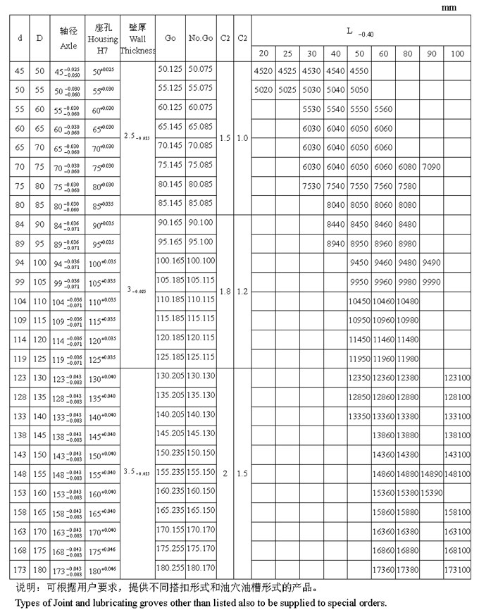 JF 雙金屬產(chǎn)品系列軸承標(biāo)準(zhǔn)尺寸