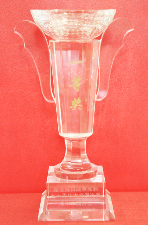 201591下午,“漳州市國資委紀念抗戰勝利七十周年大合唱比賽”在人民劇場隆重舉行。公司合唱團憑借兩首氣勢磅礴的歌曲《當那天來臨》、《保衛黃河》征服了評委和觀眾,拿下全場9.882的最高分,榮獲一等獎。這是公司合唱團繼2007520漳州市首屆“企業之聲”歌詠比賽之后奪得的又一個一等獎,當黨委書記、董事長曾凡沛代表公司接過一等獎獎杯時,公司合唱團及觀眾席都沸騰起來了,大家高舉著雙手,鼓掌、歡呼、雀躍,合唱團微信群里的信息也是“一波未平,一波又起”,久久不能平靜……
