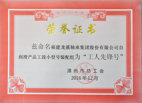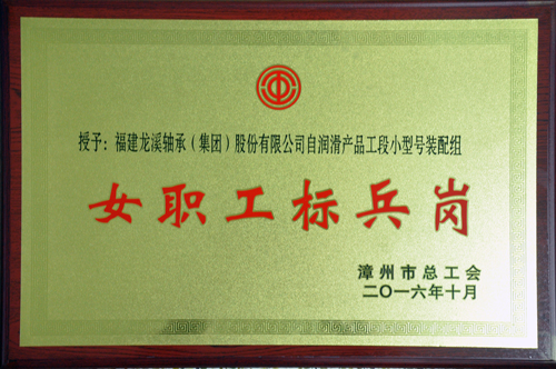 2016年,公司自潤滑產品工段小型號裝配組收獲頗豐,繼獲得公司2015年度“先進班組”后,又被漳州市總工會授予漳州市“工人先鋒號”及“女職工標兵崗”榮譽稱號。