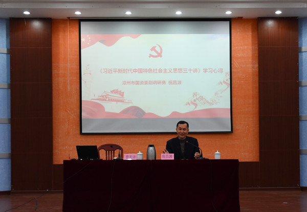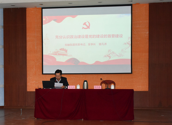 為進(jìn)一步興起習(xí)近平新時(shí)代中國特色社會主義思想 “大學(xué)習(xí)”熱潮,2018年12月28日晚,龍軸集團(tuán)在俱樂部會議室組織開展專題黨課講座。集團(tuán)黨委書記、董事長曾凡沛作了題為《充分認(rèn)識政治建設(shè)是黨的建設(shè)的首要建設(shè)》專題黨課,同時(shí)邀請漳州市國資委副調(diào)研員倪昌源講授《<習(xí)近平新時(shí)代中國特色社會主義思想>三十講學(xué)習(xí)心得》。集團(tuán)高管、各黨總支、黨支部書記及支委、中層以上管理人員共130余人參加了黨課學(xué)習(xí)。