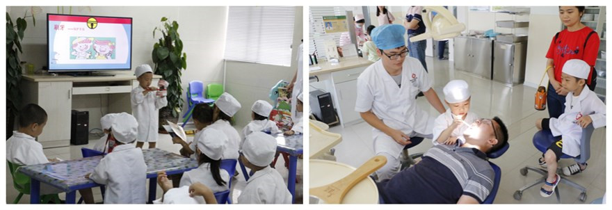 活動(dòng)當(dāng)天,小朋友變身“小牙醫(yī)”開始體驗(yàn)之旅,在寓教于樂的角色扮演中了解到壞牙的樣子和產(chǎn)生原因,學(xué)習(xí)到各種牙齒小常識(shí),認(rèn)識(shí)了愛牙、護(hù)牙的重要性,還學(xué)會(huì)了正確的刷牙方法--巴士刷牙法。最后,親子活動(dòng)在小朋友們舉起“優(yōu)秀小牙醫(yī)”獎(jiǎng)狀的合影中圓滿結(jié)束。