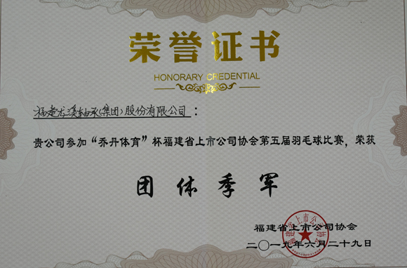 ????根據福建省上市公司協會《關于舉辦福建省上市公司協會“喬丹體育”杯第五屆羽毛球比賽的通知》,公司組隊參加了6月28-29日在福州舉辦的福建省上市公司協會“喬丹體育”杯第五屆羽毛球比賽,共有16支上市公司隊伍參加。