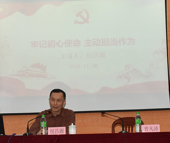 ????2019年11月8日下午,漳州市國資委四級調研員倪昌源在公司俱樂部一樓會議室講授《牢記初心使命 勇于擔當作為》專題黨課。公司領導、各黨總支(黨支部)書記及支委委員、中層干部及主題教育領導小組辦公室成員聆聽學習。