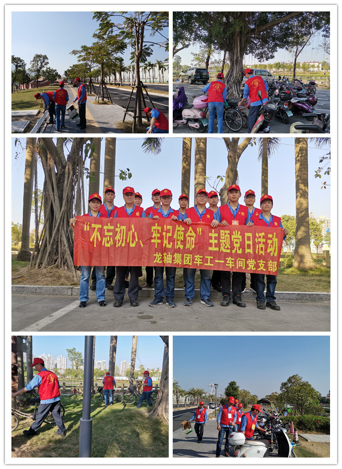 ????2019年11月16日,公司車工一車間黨支部全體黨員及班組長在支部書記陳躍輝帶領下,來到南湖開展“不忘初心、牢記使命”志愿服務活動。他們發揚不怕臟,不怕累的精神,對南湖沿路和草地上的煙頭、垃圾、雜物等進行了全面清掃,同時整理隨意停放的自行車、電動車等,用實際行動喚起游客的環保意識和自覺規范停車的意識。