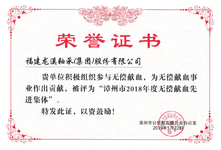 公司榮獲“漳州市2018年度無償獻血先進集體”稱號