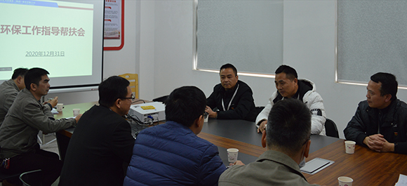 2020年12月31日下午,龍文區生態環境局副局長王立平帶領執法大隊大隊長金大勇、執法大隊副大隊長康藝端蒞臨公司藍田二廠區召開環保工作指導幫扶會,公司常務副總經理陳志雄主持會議,藍田二廠區各車間主管、環境與安全管理部主管及專職、兼職環保員參加了會議。