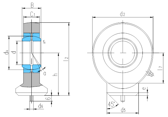 產(chǎn)品特點:焊接型桿端關(guān)節(jié)軸承由桿端體和向心關(guān)節(jié)軸承GE…E或GE…ES組裝而成,桿端體材料是易焊接鋼,桿端柄部裝有彈性銷,便于焊接時定位;可通過油杯或桿端眼孔潤滑。