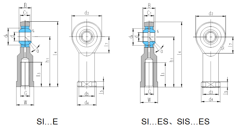 產(chǎn)品特點(diǎn):組裝桿端關(guān)節(jié)軸承由桿端體和向心關(guān)節(jié)軸承GE…E或GE…ES組裝而成,桿端體材料是碳鋼,表面鍍鋅;除型號(hào)后置代號(hào)為E外,其余型號(hào)可通過油杯或桿端眼孔潤滑。