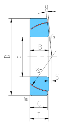 d | D | B | C | T | dk | S | rs,r1s min | α? ≈ | 動載荷 Dynamic | 靜載荷 Static | ||