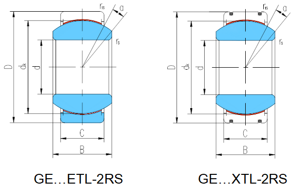 可提供密封圈為“2GS”和不帶密封圈的向心關節軸承。