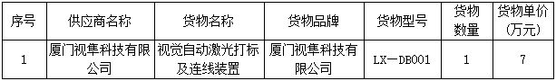 二、項目名稱:視覺自動激光打標及連線裝置采購與安裝