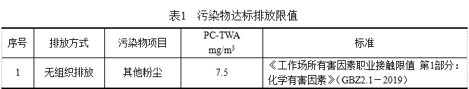 砂帶機(jī)產(chǎn)生的粉塵經(jīng)處理后達(dá)到《大氣污染物排放標(biāo)準(zhǔn)》(GB16297-1996)表2二級(jí)標(biāo)準(zhǔn)要求,即顆粒物排放濃度≤120mg/m3,尾氣接至窗戶外,同時(shí)增加百葉窗裝飾。同時(shí),車間內(nèi)無(wú)組織排放粉塵能符合《工作場(chǎng)所有害因素職業(yè)接觸限值 第1部分:化學(xué)有害因素》(GBZ2.1-2019)相應(yīng)標(biāo)準(zhǔn)要求,具體見(jiàn)下表1。