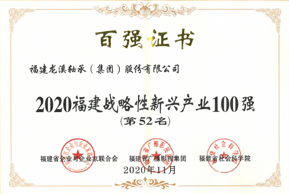 2020年11月20日,2020福建企業(yè)100強發(fā)布大會暨福建企業(yè)家大講壇在寧德市舉辦。會上,福建省企業(yè)與企業(yè)家聯(lián)合會聯(lián)合、福建省社會科學(xué)院、福建省廣播影視集團聯(lián)合發(fā)布的“2020福建戰(zhàn)略性新興產(chǎn)業(yè)領(lǐng)軍企業(yè)100強”榜單中,公司位列榜單第52名。