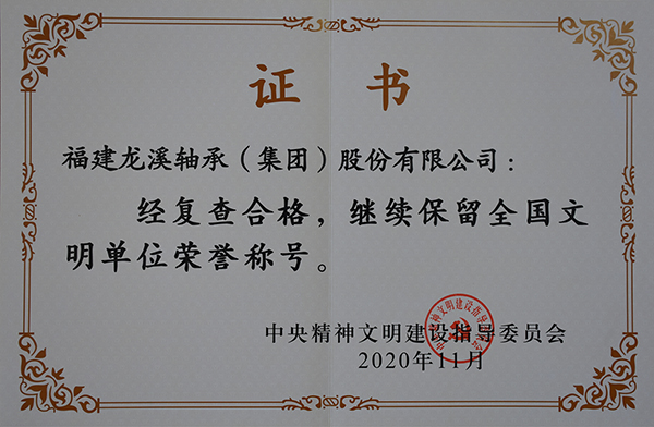 2020年11月,中央精神文明建設(shè)指導(dǎo)委員會下發(fā)《關(guān)于復(fù)查確認繼續(xù)保留榮譽稱號的全國文明城市、文明村鎮(zhèn)、文明單位、文明家庭、文明校園的通報》,公司再次順利通過復(fù)審,榮獲第六屆“全國文明單位”稱號,連續(xù)三屆榮獲此稱號。