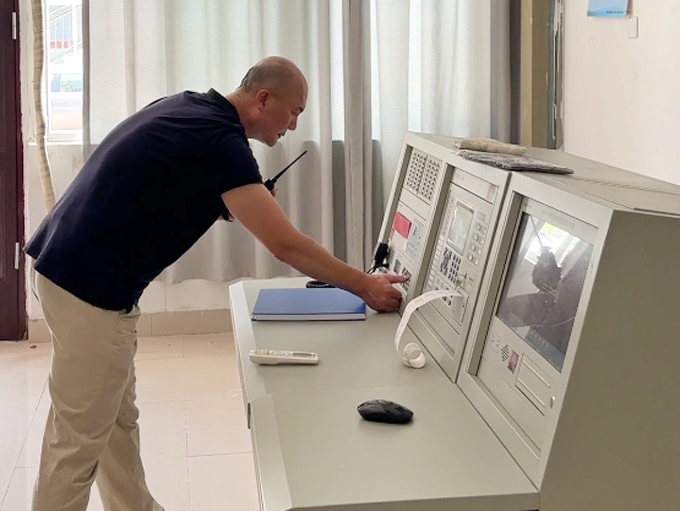 ▲值班人員接警并確認(rèn)火情后,立即啟動消防廣播,發(fā)出疏散指令