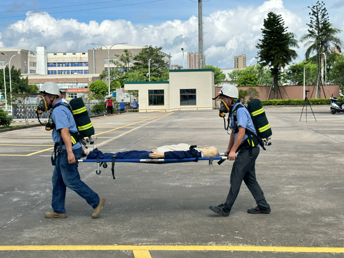 陳志雄向參加人員強(qiáng)調(diào)了應(yīng)急演練的紀(jì)律,并宣布演練開始。接到指令后,各應(yīng)急小組按照預(yù)案中的緊急報(bào)警、緊急疏散、應(yīng)急救護(hù)和現(xiàn)場警戒等程序有條不紊地展開演練。