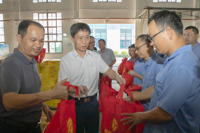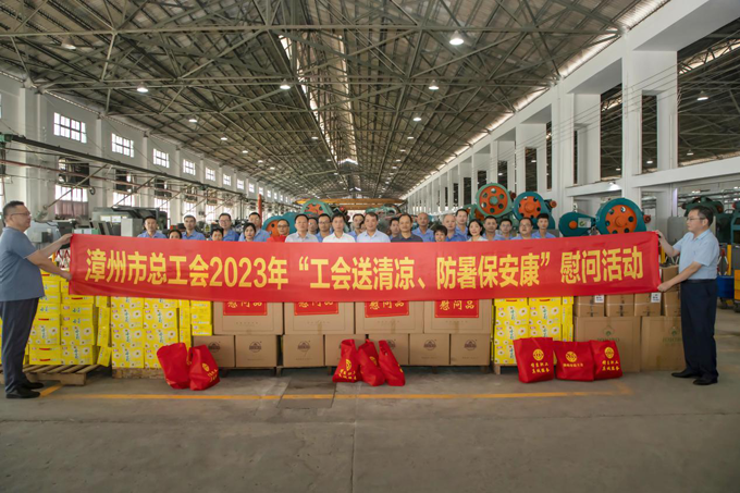 2023年7月14日,漳州市總工會黨組書記、常務(wù)副主席張哲青,黨組成員、工會副主席曾景賢帶領(lǐng)漳州市總工會慰問團(tuán)蒞臨龍軸集團(tuán)開展“工會送清涼、防暑保安康”慰問活動。龍軸集團(tuán)黨委書記、董事長陳晉輝,黨委副書記、工會主席劉明福參加慰問。