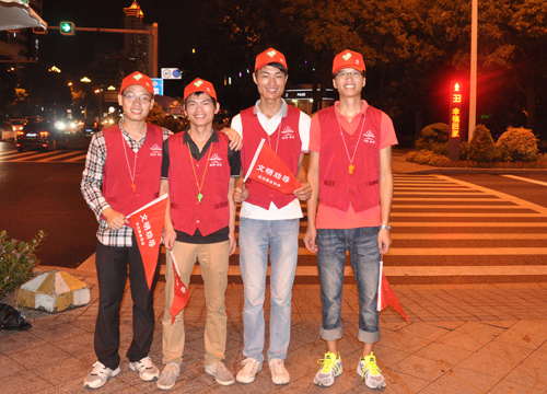 活動當晚,受臺風天氣影響,下起了雨,但這絲毫不影響我司志愿者們的服務熱情,他們統一身著志愿服務紅馬褂、帽子,持宣傳小旗、口哨,早早地走上街頭,對闖紅燈和橫穿馬路的行人進行耐心、禮貌的勸導,制止亂扔垃圾等不文明行為的發生,讓行人自覺規范行為,樹立較強的交通安全意識和文明風尚意識。