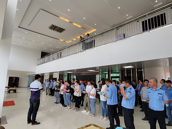 消防安全知識培訓結束后,公司在藍田三廠區綜合樓組織開展“滅火、應急疏散預案”演練。此次演練模擬藍田三廠區綜合樓一樓突發火情,濃煙觸發綜合樓消防報警系統,綜合樓各科室辦公人員聽到消防報警后,迅速開展疏散逃生,旨在提高廣大員工的火災逃生及滅火能力,增強廣大員工消防意識,同時驗證公司《滅火、應急疏散預案》的實際應急效果。