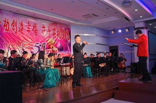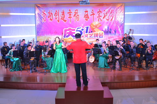 當晚,公司俱樂部燈光璀璨,樂聲歡騰。隨著強勁的鼓點響起,開場舞《騰龍鼓樂》拉開了整場晚會的序幕,隨后,公司“老”歌手曾艷輝及團委組建的舞蹈隊帶來了精彩的歌伴舞《雙腳踏上幸福路》,“新”歌手張錚聲情并茂地演繹了歌劇《江姐》選段《我為共產主義把青春貢獻》及民歌《桃花紅杏花白》,龍通藝術團的歌手李紅英、吳罕帶來的獨唱《好日子》、《我愛你中國》喜慶激昂,羅斌峰的笛子獨奏《牧民新歌》及樂團現場演奏的《龍江歡歌》、《紅樓夢插曲》、《蘇南小調》余音繞梁,男歌手熊凱、溫煥振的男聲獨唱《格桑梅朵》、《懷念戰友》、《駿馬奔馳保邊疆》、中央民族大學聲樂碩士郭源源為大家帶來的《海風陣陣》、《一杯美酒》大氣悠揚。