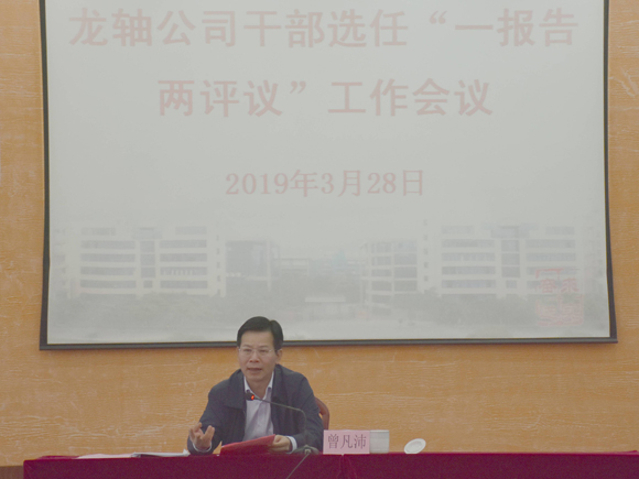 按照市國資委部署要求,2019年3月28日下午,公司召開2018年度干部選拔任用 “一報告兩評議”會議,全體高、中層管理人員、部分基層黨員干部職工代表共105名參加了會議,漳州市國資委政治部陳林晞到會監督指導。