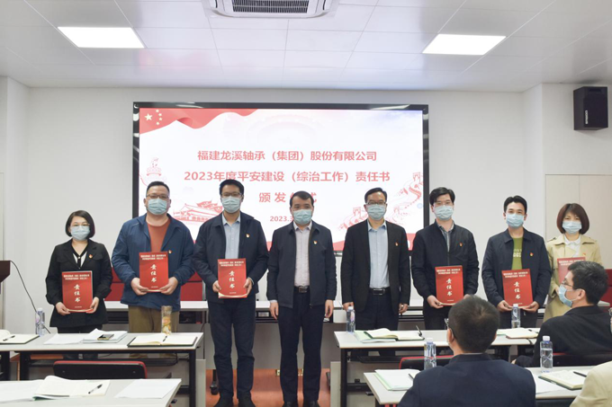 2023年3月16日,龍軸集團舉行平安建設(綜治工作)責任書簽訂頒發儀式。公司黨委書記、董事長陳晉輝,黨委副書記劉明福分別與在漳權屬企業和各部門、車間負責人簽訂責任書,陳晉輝和公司黨委副書記、總經理陳志雄一同頒發責任書。