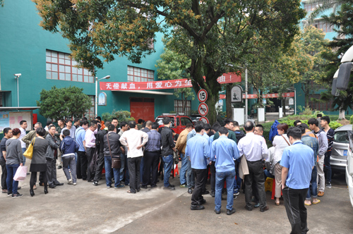2016年4月9日,公司總部大樓前及藍田一廠區人頭攢動。二百多名員工積極響應公司號召,踴躍參加無償獻血公益活動,為確保醫療急救用血需要、應對突發公共衛生事件貢獻自己的力量,用實際行動弘揚了人道主義精神。