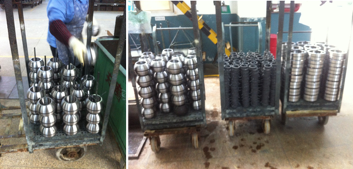 圖1 表面防護車間現場手工串料場景