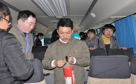 首先由大巴車駕駛員講解大巴應急門、車頂窗的開啟方法、安全錘的使用方法及滅火器擺放位置,然后由環安部安全員講解滅火器的操作及使用規范和后窗玻璃逃生方法?,F場演練模擬公司通勤廠車因故障著火并迅速蔓延,車廂內濃煙滾滾,車門因電氣故障無法打開,大巴駕駛員立即打開應急車門,組織乘車員工有序撤離,同時向綜合部主管報告事故情況。綜合部主管判斷現場情況后,立即啟動《綜合應急預案》,組織各應急救援小組立即趕赴現場,展開應急響應。