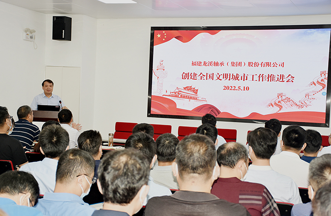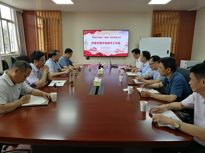 2022年5月10日,龍軸集團召開創建全國文明城市工作推進會。會議由黨委副書記劉明福主持,公司領導班子及各部室、車間負責人參加。會議傳達了2022年5月9日漳州市第二季度“一季一主題”現場推進會精神。