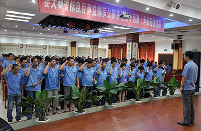 會議最后,曾凡沛董事長發表了動員講話并宣布精益項目正式啟動。他強調,召開誓師大會的目的就是要彰顯公司對精益項目導入的高度重視和實施的堅定信心和決心。公司目前的生產管理、人力資源、文化及管理團隊等均還不夠完善,員工普遍缺乏危機意識、創新意識和責任意識。精益項目的導入是改變公司現狀、應對競爭的需要,是企業生存和發展的需要,是每個員工提高收入、實現職業生涯的需要。