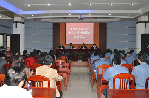 6、2013年1月31日,組織公司高管、部分中層主管36人參加市委宣傳部、市國(guó)資委組織的“黨的十八大宣講團(tuán)”到公司舉行“十八大進(jìn)企業(yè)”活動(dòng)。