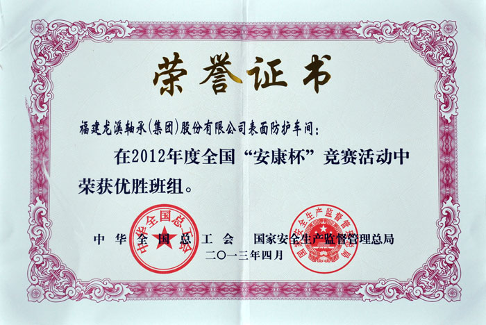 2012漳州年市安康杯優(yōu)秀組織獎