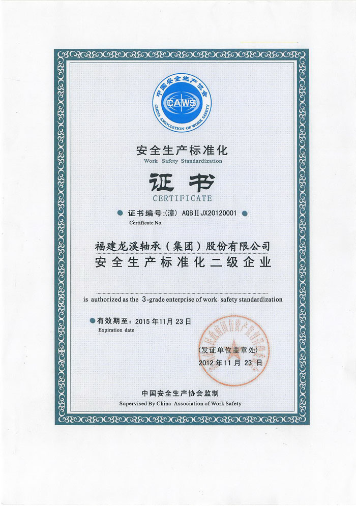安全生產(chǎn)標(biāo)準(zhǔn)化二級企業(yè)證書